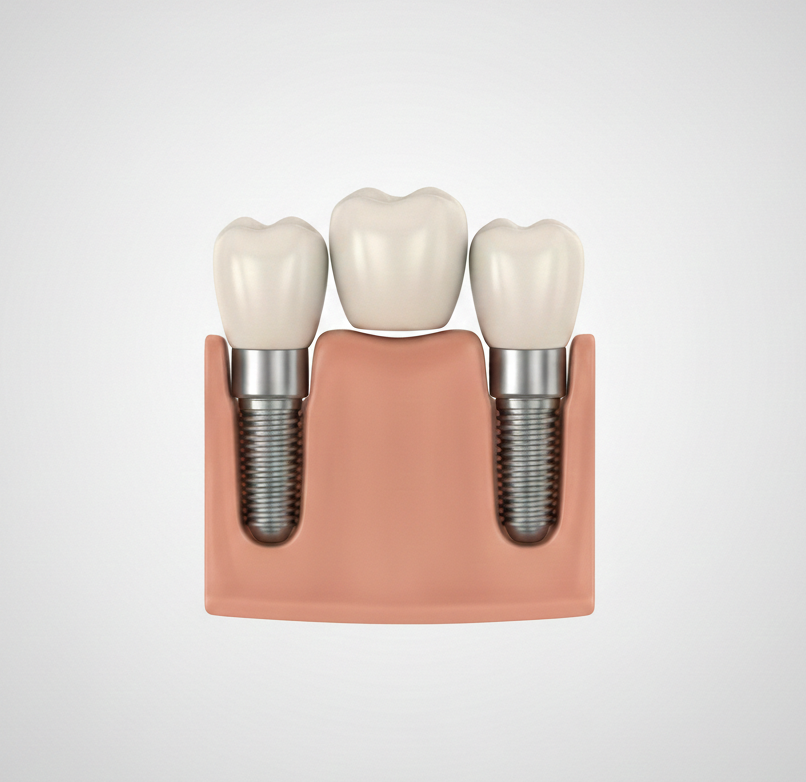Wenn mehrere Zähne nebeneinander fehlen, stellen Implantatbrücken eine hochwertige Lösung dar, um die Zahnreihe lückenlos und belastbar zu schließen.